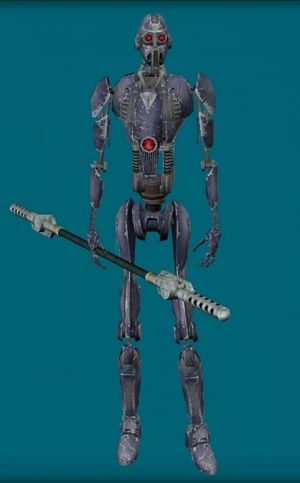 Wenn du den Weg hinter Erriya weitergehst, stoßt du letztlich an ein vergittertes Tor vor dem ein Droide Model 3-NIi /waypoint -473 61 steht. Dieser beauftragt dich einen Kristall zu suchen. Für diesen Radiated Nak'tra Crystal gehst du den Weg wieder zurück, bei Erriya vorbei bis du zu der kleinen Höhle kommst durch die ein Fluss fließt /waypoint -470 -234. Hier findest du einige rote Kristalle. Klick einen davon an und dann gehts zurück zu Model 3-NIl der dich jetzt durch das Tor lässt.